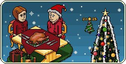 We know there is a winter infostand, and we know there is a present where your Habbo can sit inside a gift box. Unfortunately, neither of these made it to Origins in December.