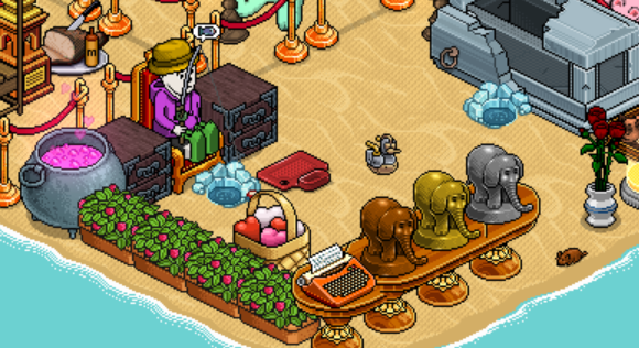 At first, I wasn’t sure anyone would buy my spare furni. But the beauty of Origins is the player-driven economy. What I saw as clutter, spare junk, hidden away in my endless storage rooms, someone else saw as the final piece for their retro build, trading room, or room comp build. Slowly but surely, Habloons started coming in. An iced chair here. A FF bear rug there. An old trax-era poster I neatly dumped months prior, sold within minutes.
