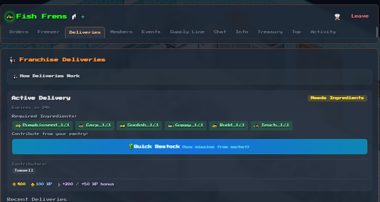 Uhh I broke our franchise's delivery, I think I clicked the ingredients too fast, it's stuck saying "Needs Ingredients" but all the slots are full.